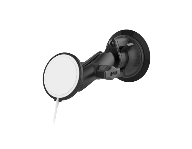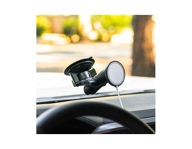 Uchwyt na przyssawkę RAM Mounts Twist-Lock do ładowarki Apple MagSafe (PN: RAM-B-166-AP-MAGU) to bzpieczny adapter mocowania zaprojektowany specjalnie dla dysku ładującego MagSafe.