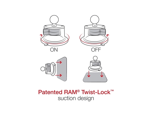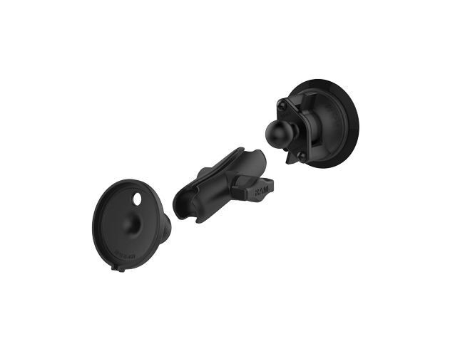 Zawiera podstawę z przyssawką RAM Twist-Lock idealną do montażu na przednich szybach samochodowych i średniej długości ramię z podwójnym gniazdem RAM w rozmiarze B. Technologia kulkowa i gniazdowa pozwala na niemal nieskończoną regulację.