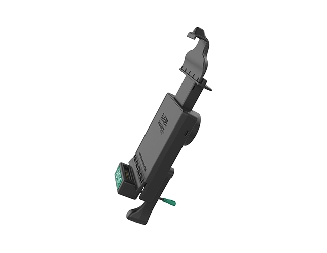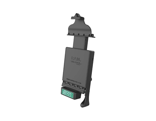 Uniwersalna stacja mobilna GDS RAM Mounts (PN: RAM-GDS-DOCKL-V9-OMT1U) ze złączem typu-C i technologią GDS dla tabletów do pojazdów. Zbudowana z kompozytów o wysokiej wytrzymałości.