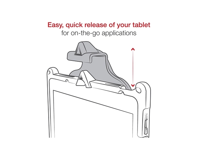 Sprężynowa stacja GDS Type-C Vehicle Dock z szybkim zwalnianiem jest wyposażona w zamek na klucz, który zapewnia bezpieczne dopasowanie i łatwy dostęp do zamontowanego tabletu.