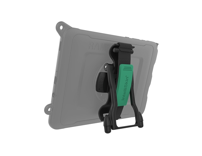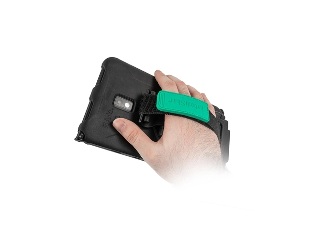 Pasek magnetyczny umożliwia łatwe przymocowanie urządzenia do wielu metalowych powierzchni. Został specjalnie zaprojektowany dla klienta korporacyjnego, będąc jednocześnie idealnym rozwiązaniem dla konsumentów. Jego unikalna konstrukcja obejmuje wygodny pasek na rękę, który jest kompatybilny z dłonią w rękawiczce, a także umożliwia obrót o 360 stopni, aby uzyskać idealny kąt widzenia. Ponadto zintegrowana podpórka umożliwia ustawienie tabletu na płaskiej powierzchni w celu obsługi tabletu mobilnie.