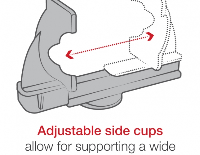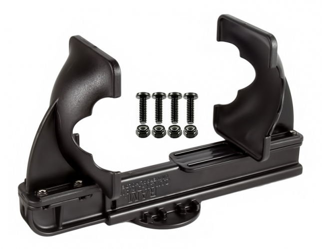 Regulowane boczne miseczki umożliwiają obsługę szerokiej gamy urządzeń, a wytrzymała sprężyna sprawia, że nadaje się do każdego trudnego środowiska, w tym wózków widłowych. Wzór otworów AMPS z tyłu zapewnia możliwość dostosowania do dowolnego opatentowanego rozwiązania do montażu na podwójnej kuli i nasadce RAM.