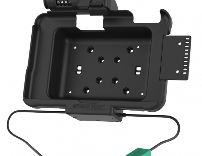 Opcjonalny uchwyt na akcesoria umożliwia podłączenie dwuotworowych podstaw siamentowych RAM do montażu urządzenia i zawierra system zarządzania kablami dla przewodów ładujących lub dodatkowych peryferiów.