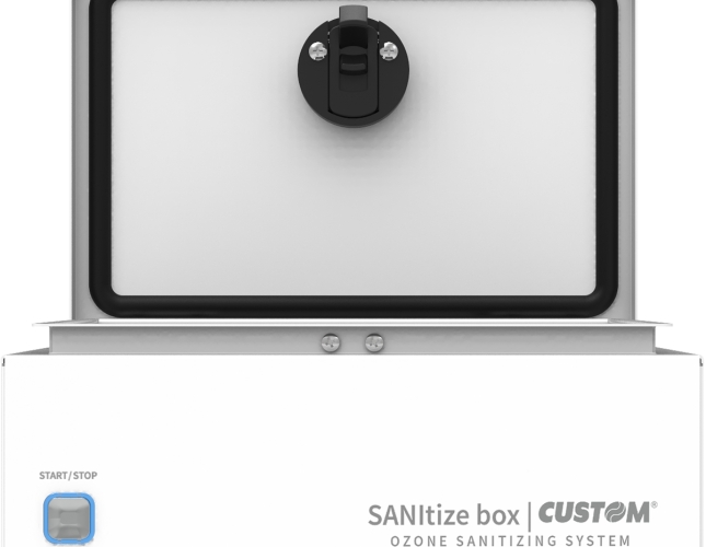 SANItize box firmy Custom to nowoczesny system odkażania ozonem. Dezynfekuje i sterylizuje usuwając wirusy, bakterie, pleśń i grzyby z różnych przedmiotów typu maski, okulary, klucze, smartfony, tablety, słuchawki, portfele, monety, urządzenia POS, czytniki kart, terminale czy innych powszechnie używanych przedmiotów zarówno w życiu osobistym jak i zawodowym.