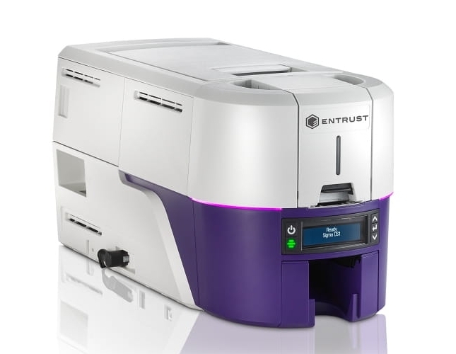 Entrust Sigma DS2 to dwustronna drukarka kart. Cechuje się wygodą i intuicyjnością obsługi dzięki drukowaniu w chmurze i zgodności z urządzeniami opartymi na systemach iOS, Windows oraz Android.