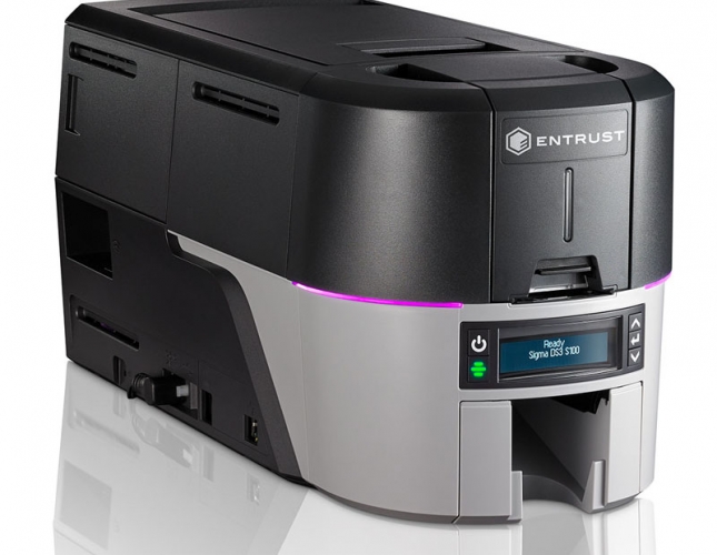 Entrust Sigma DS3 to kompletny system drukowania bezpośrednio na karcie - pozwala na druk dwustronny w kolorze.