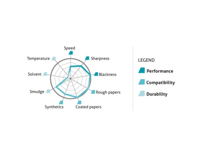 - Warstwa 1: atrament - tusz woskowo-żywiczny; temperatura topnienia: 80°C / 176°F
