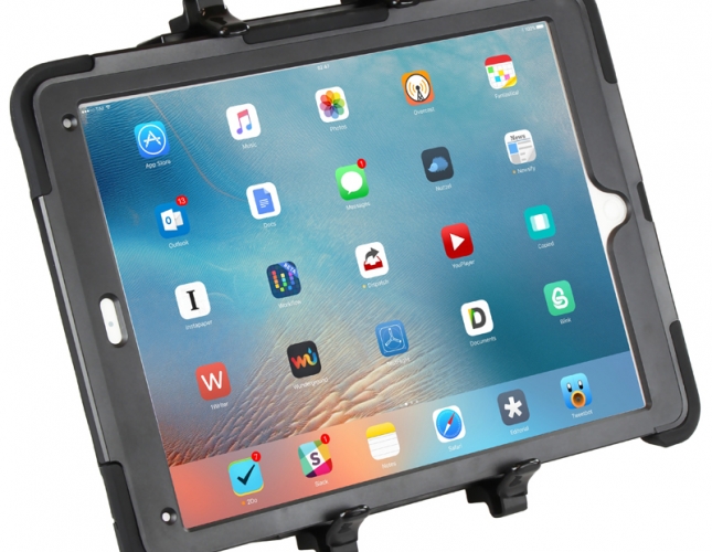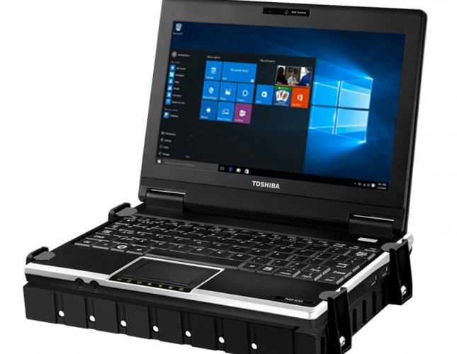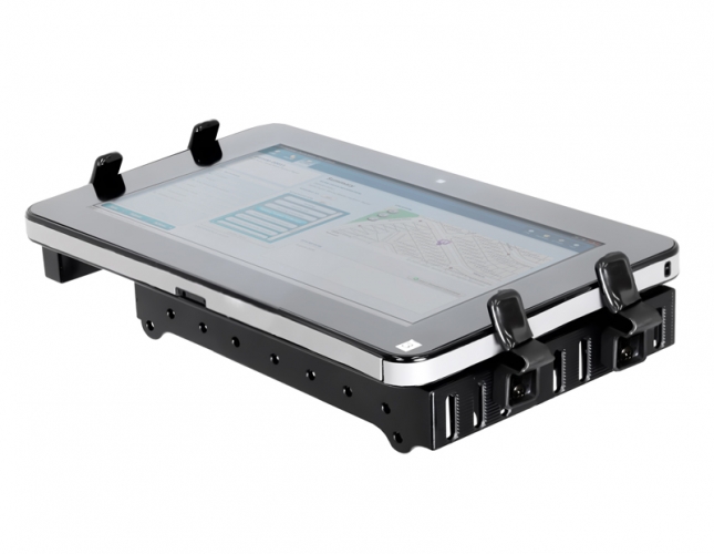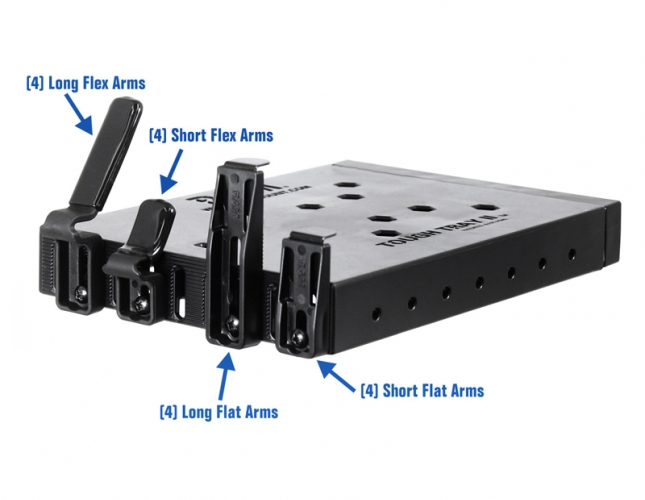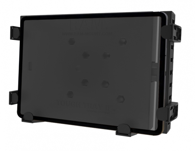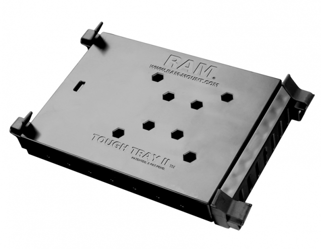 Uniwersalny uchwyt montażowy ze sprężyną RAM Tough-Tray II (PN: RAM-234-6) do tabletów i notebooków. Dzięki zastosowaniu czterech wariantów elementów chwytających możemy zainstalować również inne modele notebook'ów i tabletów przemysłowych.