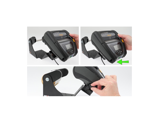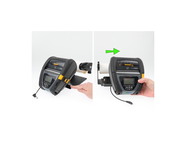 Uchwyt aktywny Brodit do drukarki Zebra ZQ630 (216145), który zapewnia ciągłe podłączenie drukarki do zasilania podczas pracy oraz możliwość szybkiego demontażu z uchwytu. Dzięki mechanizmowi MultiMoveClip z mechanizmem szybkiego zwalniania można łatwo przenosić drukarkę między lokalizacjami. Całość jest wyposażona w uchwyt na dużą rolkę taśmy.