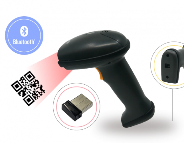 MS838B jest wyposażony w klucz sprzętowy USB, który umożliwia użytkownikom przechwytywanie kodów kreskowych przy swobodnym połączeniu bezprzewodowym. Łatwa w obsłudze funkcja plug-and-play, sprawia, że czytnik łatwo paruje się z laptopami lub komputerami stacjonarnymi bez skomplikowanej konfiguracji. Poza tym umożliwia użytkownikom przesyłanie danych do hosta z odległości do 100 metrów od bazy za pośrednictwem komunikacji bezprzewodowej 2.4G.