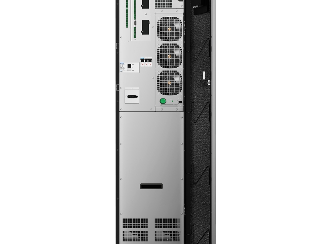 - Skalowalność „Pay as you grow" – zakres mocy 8–40 kW można rozbudowywać stopniowo, dodając moduły mocy (UPM) i łącząc do 4 szaf równolegle bez wymiany całego systemu