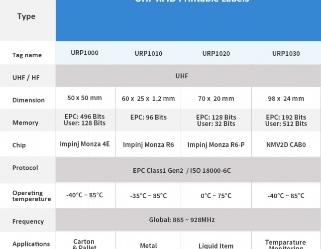 URP1020 to etykieta UHF RFID do druku firmy Unitech.