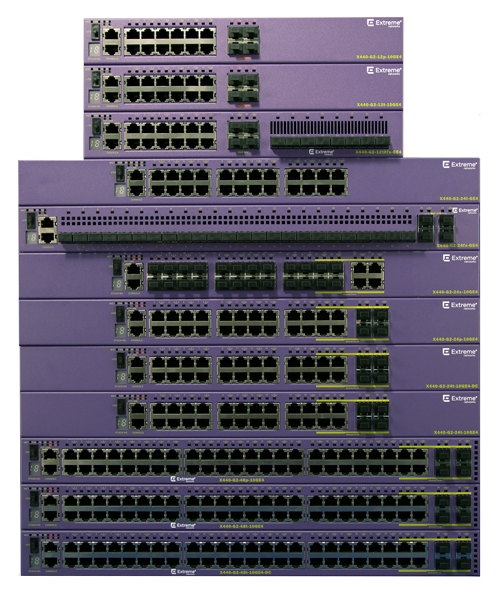 ExtremeSwitching X440-G2 to skalowalna, ekonomiczna rodzina przełączników brzegowych zaprojektowanych do zastosowań na obrzeżach kampusu.