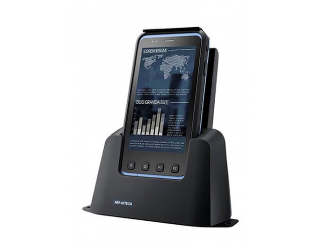 Advantech PWS-472 to 5-calowy ręczny terminal klasy przemysłowej z czterordzeniowym procesorem i termometrem na podczerwień.