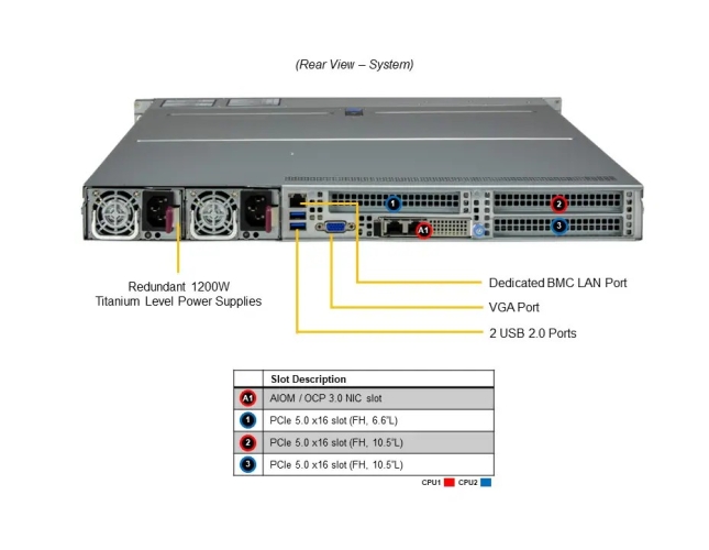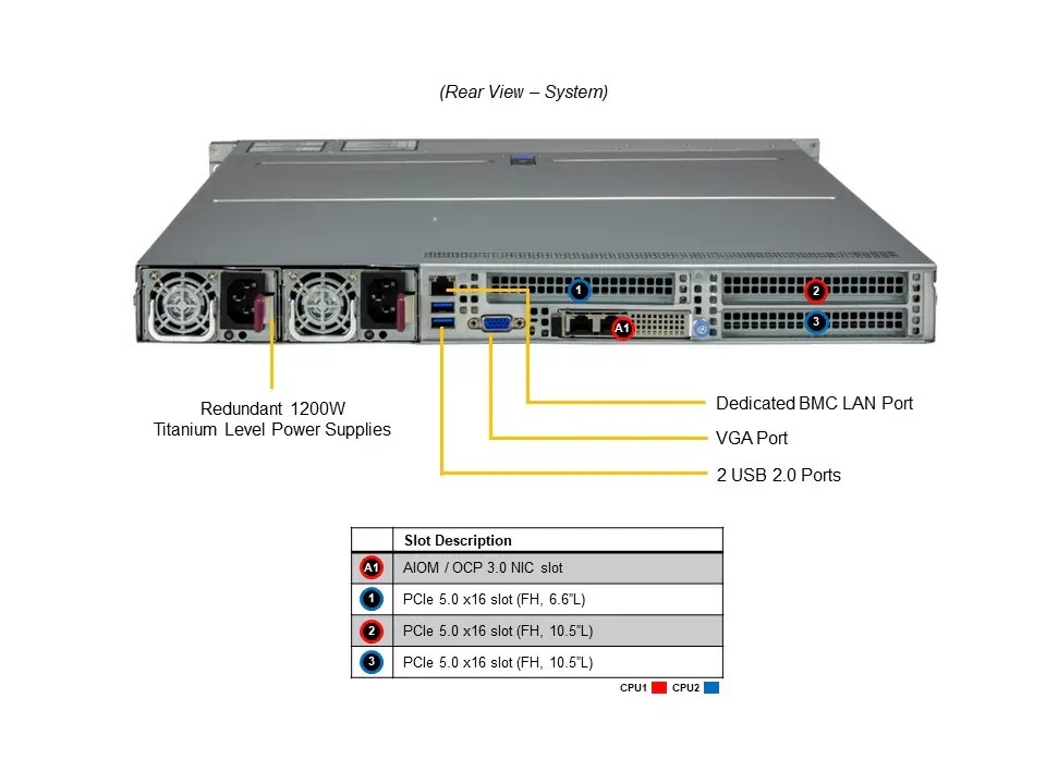 - 2× PCIe 5.0 x16 FHHL + 2× PCIe 5.0 x16 AIOM