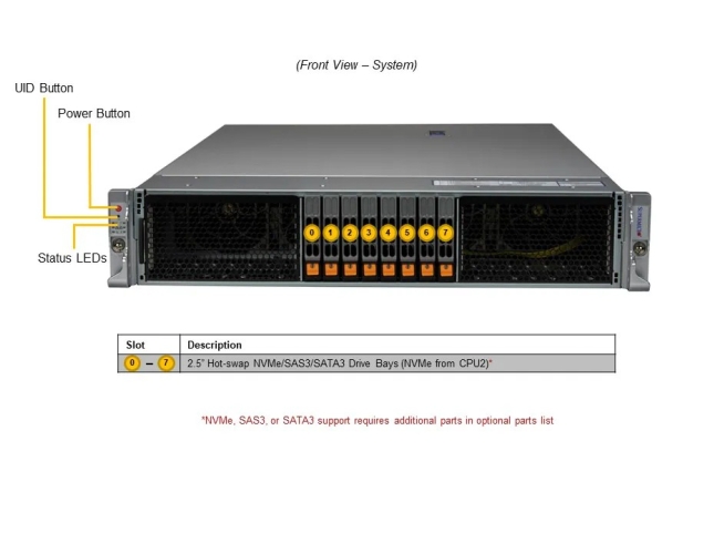 - 24× 2,5" hot-swap NVMe/SAS/SATA + 2× M.2 NVMe/SATA
