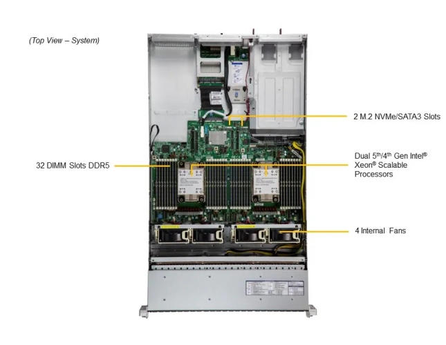 - 2× Intel Xeon Scalable 5./4. gen. (LGA-4677), do 64C/128T na CPU