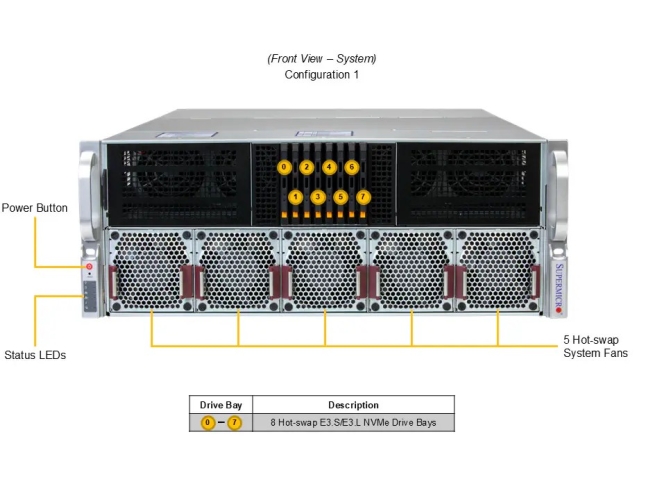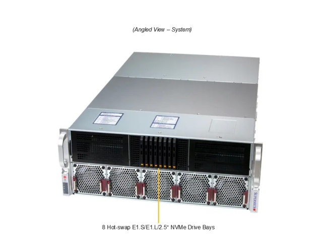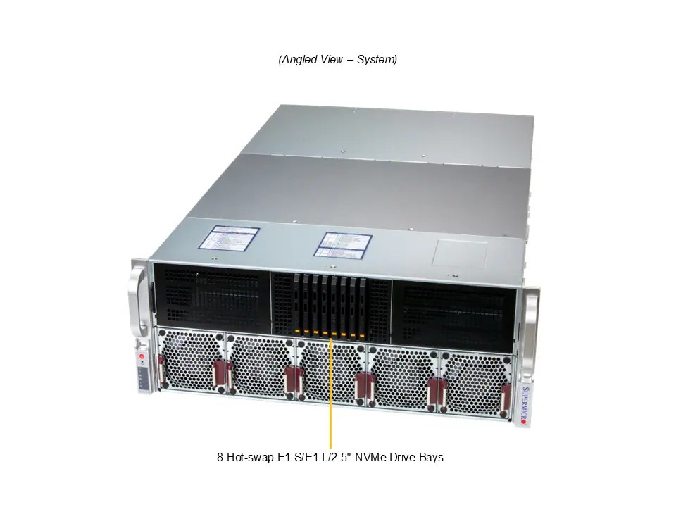 - 8× hot-swap E3.S/E3.L/2,5" NVMe PCIe 5.0 + 2× M.2 PCIe 5.0