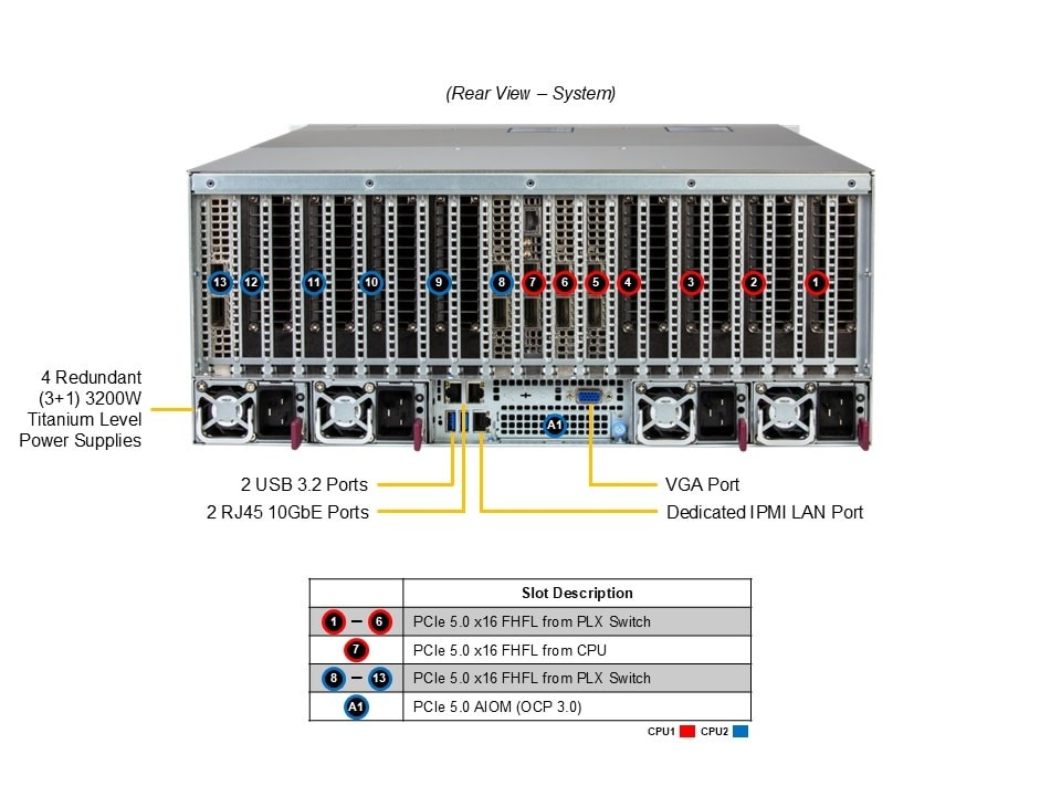 - Architektura Dual-Root PCIe Switch – 13 slotów PCIe 5.0 x16 FHFL