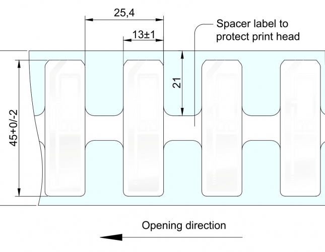 Inlay Silverline Micro II z Impinj Monza R6-P ma wymiary 45 x 13 x 1,3 mm i ma zasięg do 3,5 m. Etykietę można umieszczać na zakrzywionych powierzchniach.