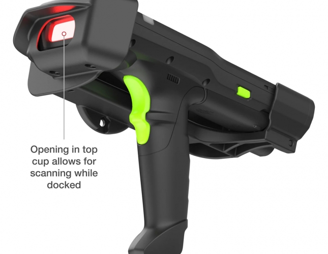 - Stacja dokująca z łądowaniem i zamknięciem RAM-HOL-ZE33PLU - możliwość ładowania dzięki 5,5-milimetrowemu złączu DC i wbudowanym stykom dokującym Pogo Pin, co zapewnia bezproblemowe ładowanie; styki Pogo Pin posiadają samonastawne podkładki dokujące, które dopasowują się do pozycji urządzenia. Dołączona podkładka zapewnia bezpieczne dopasowanie do MC3400; podkładka nie jest wymagana w przypadku MC3300. Wyposażona w blokadę na kluczyk.