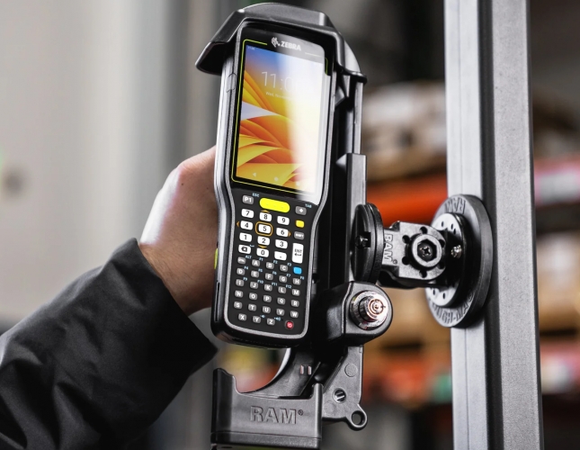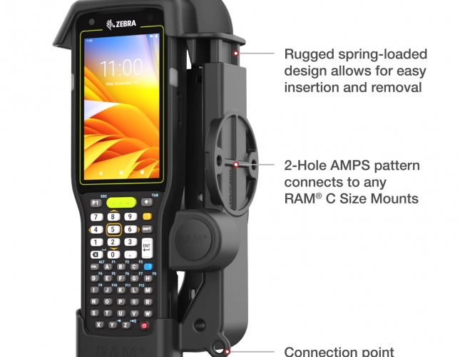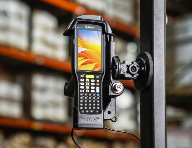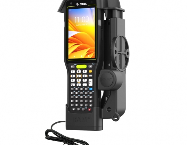 Stacje dokujące Form-Fit firmy RAM Mounts zaprojektowane specjalnie dla komputerów mobilnych Zebra serii MC3300 i MC3400.