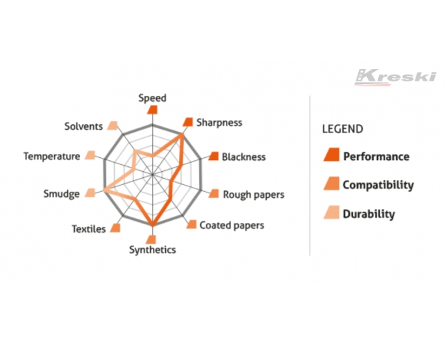 Bardzo dobrze drukuje kody skokowe. Daje lepszy rozrzut od 5095 PERFORMANCE RESIN.