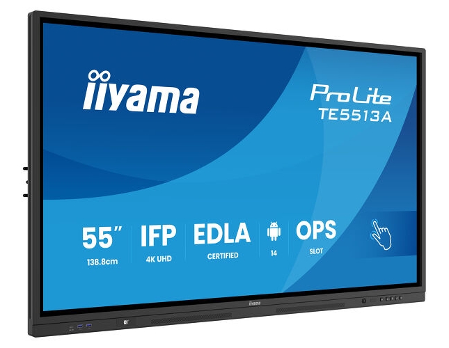 iiyama ProLite TE5513A-B1AG to nowoczesny, 55-calowy interaktywny wyświetlacz 4K UHD, certyfikowany przez Google EDLA, zaprojektowany z myślą o zapewnieniu najwyższej jakości obrazu i precyzyjnej interakcji dotykowej.