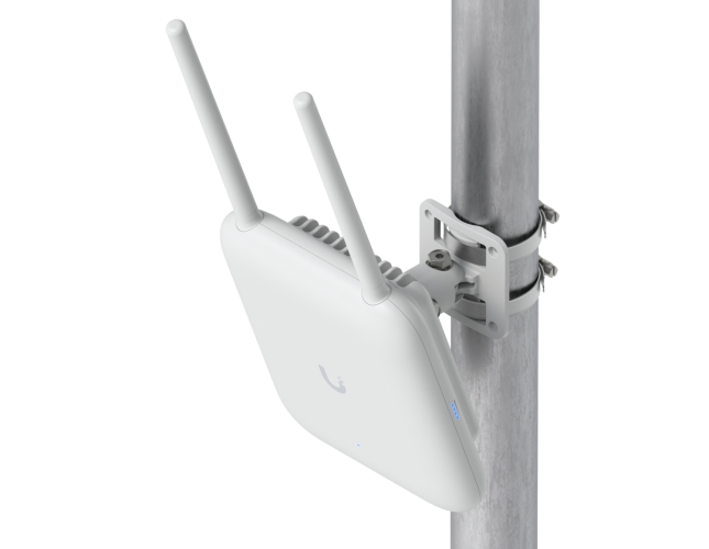 Montaż na ścianie lub słupie jest możliwy dzięki dołączonym uchwytom typu articulation bracket, co zwiększa możliwości instalacyjne. Uplink odbywa się przez port 2,5 GbE zasilany PoE+, co ułatwia wdrożenia i instalację w terenie. Integracja z platformą UniFi Network umożliwia pełne zarządzanie, monitoring i konfigurację zdalną, zapewniając kompleksowe wsparcie w outdoorowych wdrożeniach.