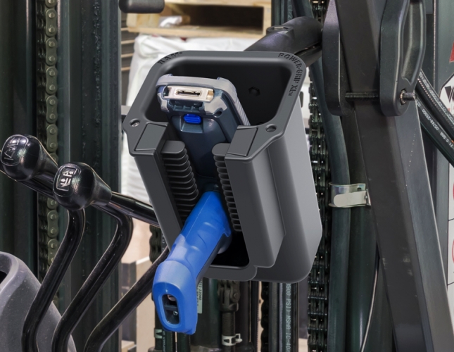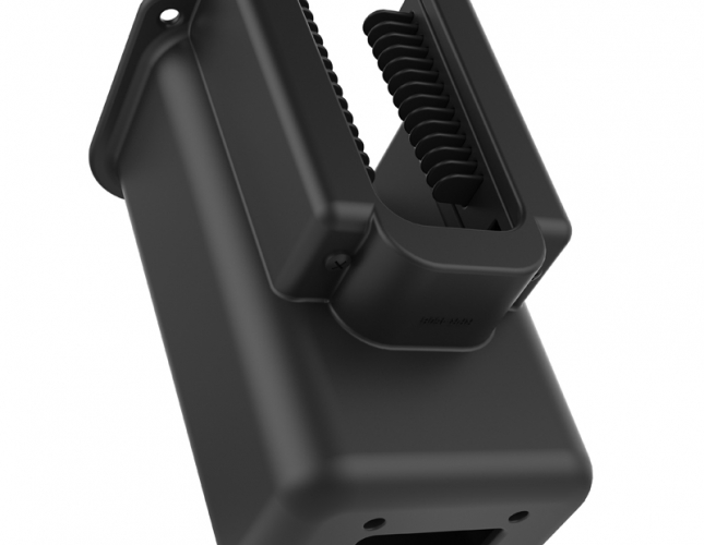 Ten uniwersalny uchwyt (gniazdo) jest kompatybilny z uchwytami RAM z pełną gamą kulowych i gniazdowych systemów mocowania wózków widłowych. Ma dwa punkty mocowania oraz ma wymienne elastomerowe żebra zapewniające bezpieczne dopasowanie.