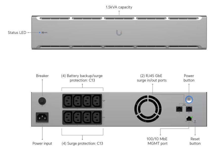 Integracja z oprogramowaniem UniFi: urządzenie pojawia się w systemie monitoringu UniFi Network, wspiera funkcję „Graceful Shutdown” dla urządzeń takich jak serie UNVR/UNAS oraz współpracuje z serwerem NUT, co pozwala na obsługę także sprzętu spoza ekosystemu UniFi.