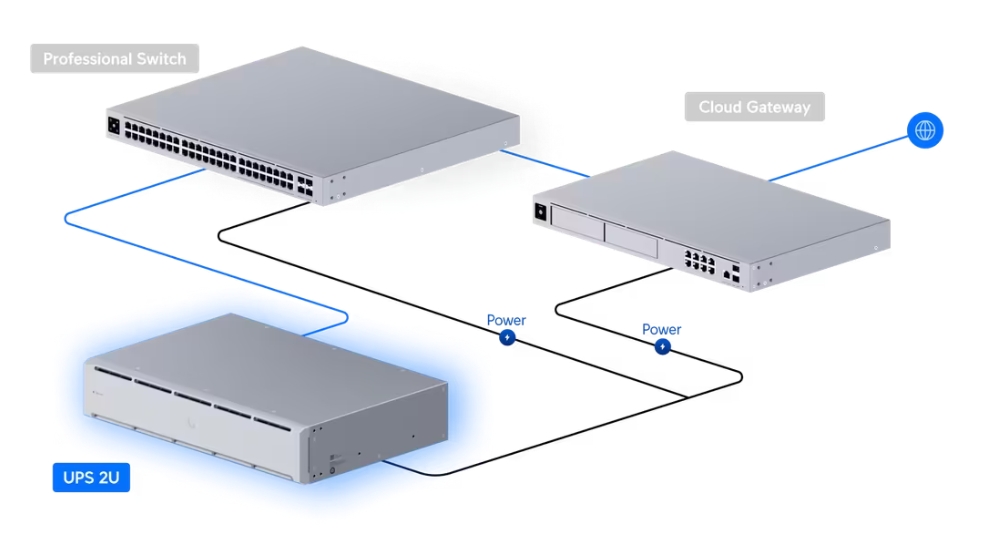 Ubiquiti UniFi UPS 2U - zasilacz awaryjny zapewniający niezawodne podtrzymanie zasilania i pełną integrację z systemem UniFi.