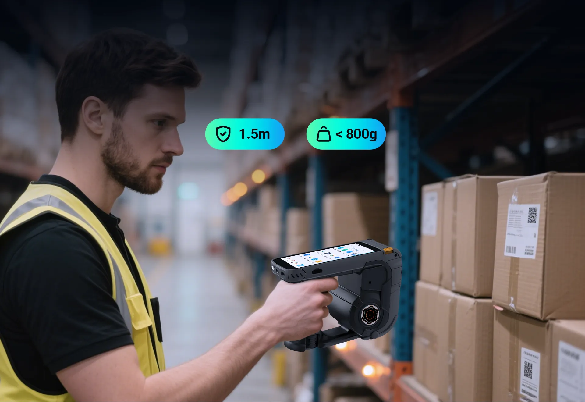 Ergonomiczna konstrukcja i odporność na trudne warunki pracy sprawiają, że urządzenie doskonale sprawdza się w intensywnym użytkowaniu. Wbudowany system Android umożliwia łatwą integrację z systemami magazynowymi i handlowymi. Możliwość rozszerzenia o funkcję kodowania RFID dodatkowo zwiększa jego uniwersalność i przygotowanie na cyfryzację łańcuchów dostaw.