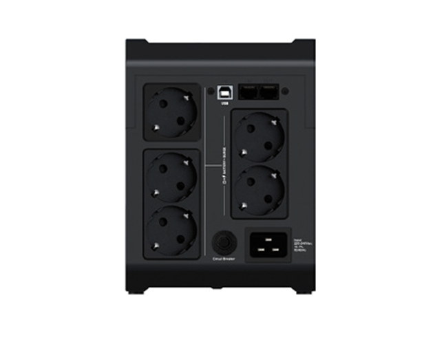 Model PSA6E-600IT-SCH to wariant 1600 VA / 925 W w obudowie z gniazdami Schuko, czyli bardziej przystosowany do typowych instalacji biurowych w Europie Środkowej (m. in. Polska). Zawiera wszystkie kluczowe cechy serii: AVR, podtrzymanie baterii, wskaźniki i wymienialną baterię.