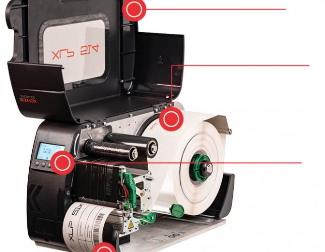 Podnoszony moduł druku umożliwia szybkie i wygodne ładowanie etykiet i taśmy barwiącej, czyszczenie i konserwację bez użycia narzędzi oraz łatwo dostępna głowica drukująca optymalizuje czas pracy bez przestojów.