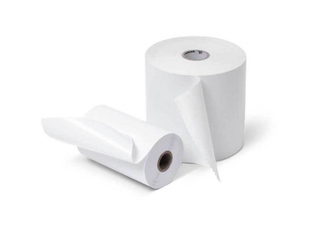 To etykiety bez podkładu na niepowlekanym papierze do druku termicznego, niezawierająca fenolu z permanentnym klejem i błyszczącym wykończeniem.